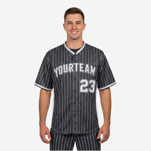 Custom Baseball Jersey in Black - Pinstripe Full Button Jersey Team Name & Number