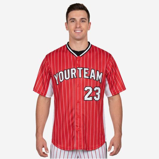 Custom Baseball Team Jersey Red - Pinstripe Full Button Custom Name Number