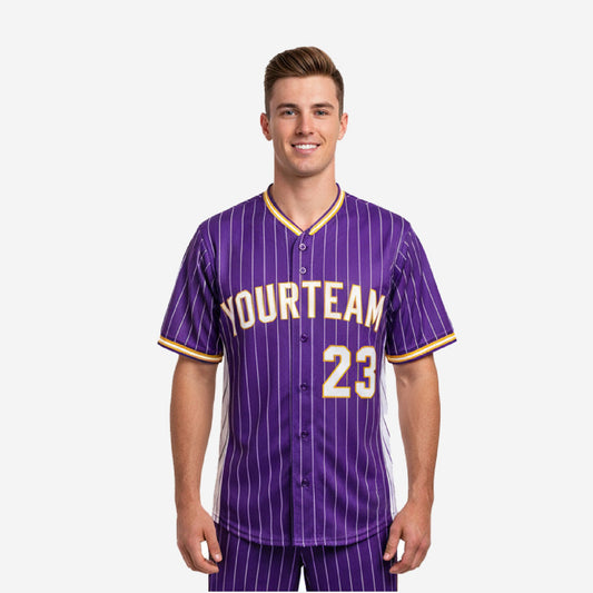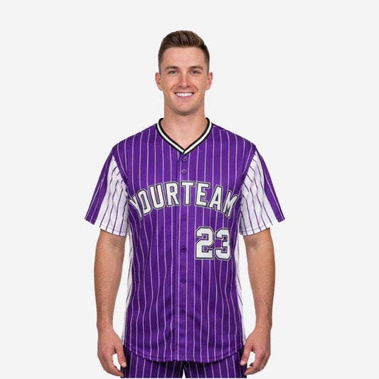 Custom Baseball Jersey in Purple - Pinstripe Full Button Jersey Team Name & Number