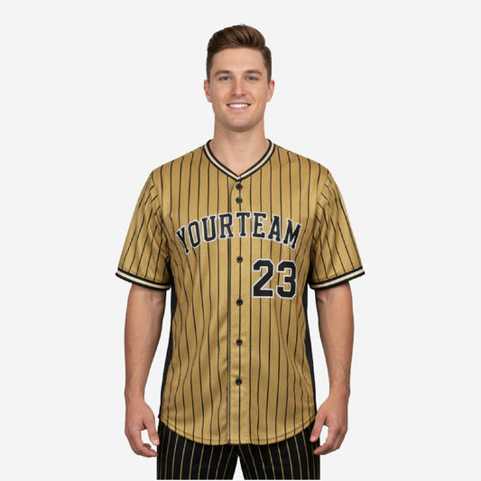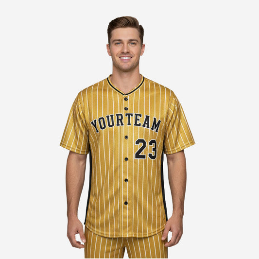 Custom Baseball Uniform Jersey - Youth & Adult Pinstripe Full Button Jersey in Gold