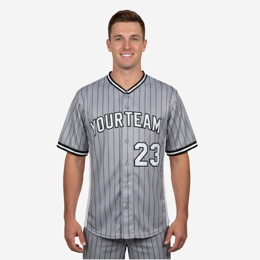 Custom Baseball Uniform Jersey - Youth & Adult Pinstripe Full Button Jersey in Gray