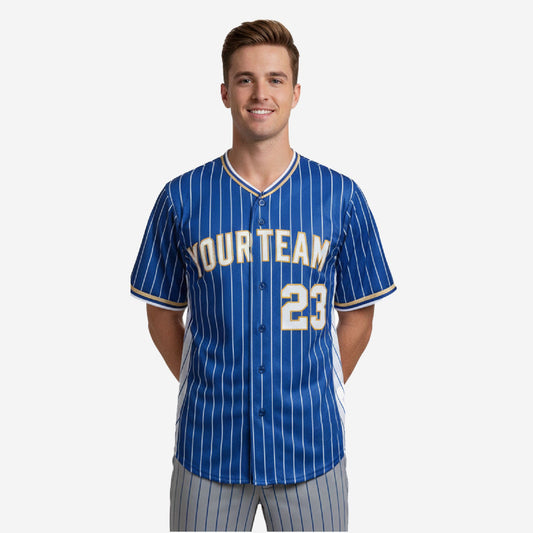 Custom Baseball Uniform Jersey - Youth & Adult Pinstripe Full Button Jersey in Blue