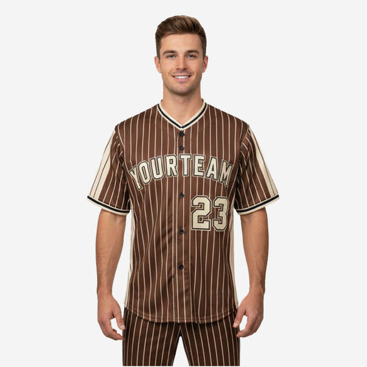 Personalized Baseball Jersey in Pale Brown - Custom Pinstripe Sublimation Print Team Jersey