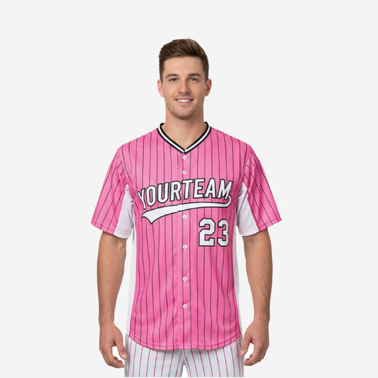 Custom Baseball Uniform Jersey - Pinstripe Full Button Sublimated Jersey in Hot Pink