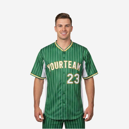 Custom Baseball Team Jersey Green - Pinstripe Full Button Custom Name Number
