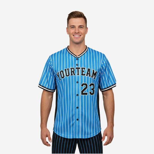Custom Baseball Uniform Jersey - Pinstripe Full Button Sublimated Jersey in Sky