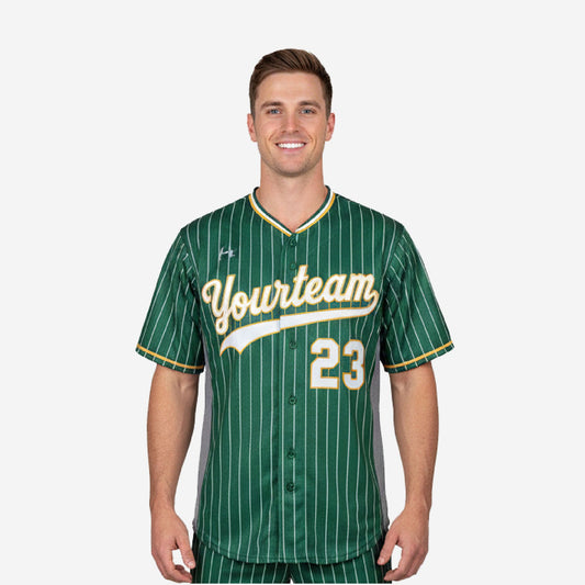 Custom Baseball Uniform Jersey - Pinstripe Full Button Sublimated Jersey in Green