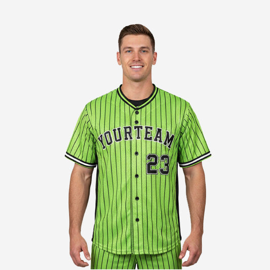 Custom Baseball Uniform Jersey - Pinstripe Full Button Sublimated Jersey in Yellow Green