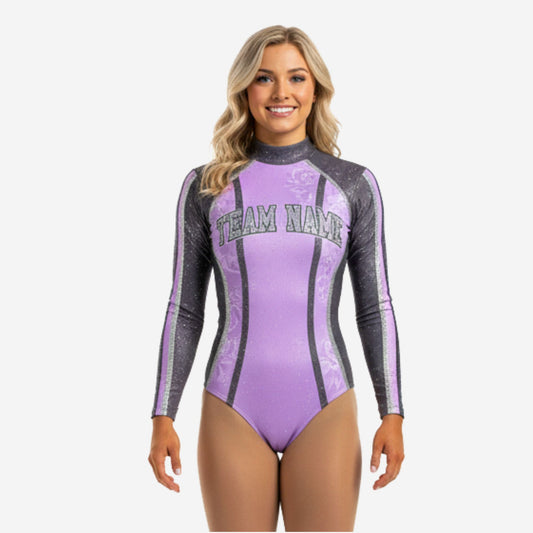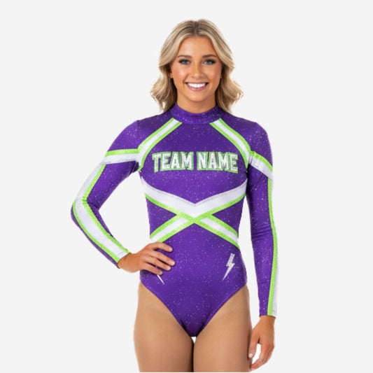 Custom Cheerleading Bodysuit - Purple Long Sleeve Uniform