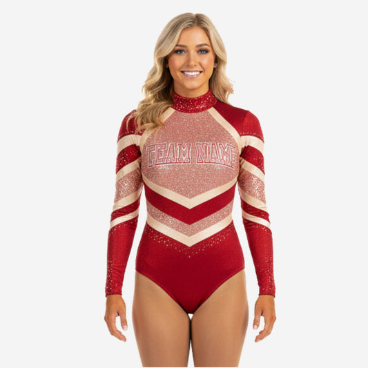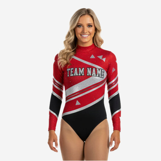 Personalized Cheer Bodysuit - Red Glitter High Neck Design