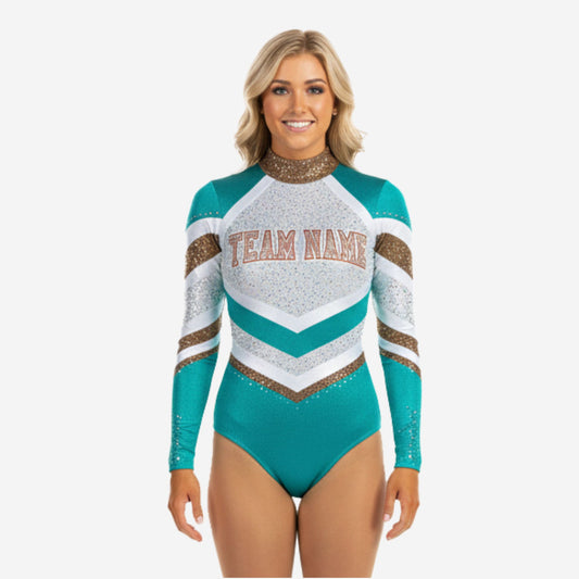 Custom Cheerleading Bodysuit - Green Long Sleeve Uniform