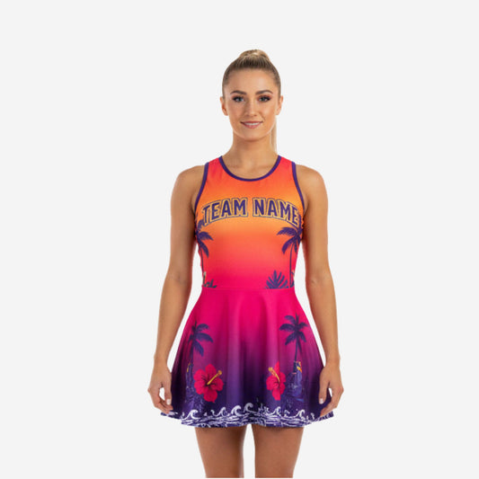 Custom Cheerleading Uniform Dress - Tropical Sunset Gradient Palm Tree Design