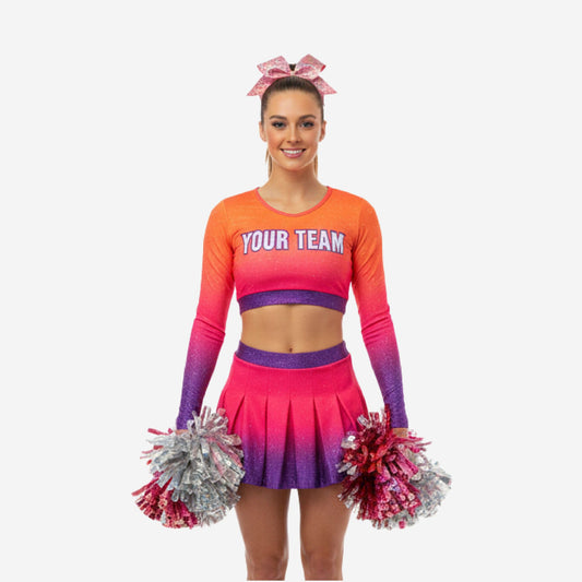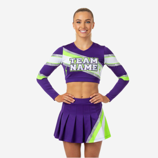 Custom Cheer Uniforms - Sublimated Long Sleeve Crop Top & Athletic Skirt Set