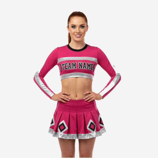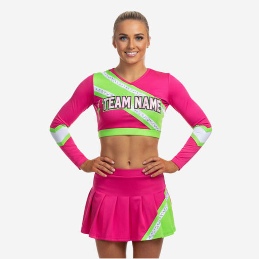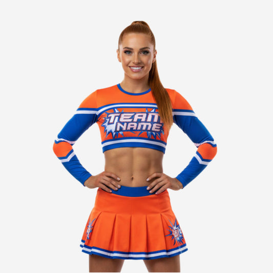 Custom Competition Cheerleading Uniforms - Long Sleeve Top & Skirt Set with Team Name