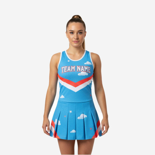 Custom Sublimated Blue Cheerleading Set - Crop Top & Pleated Skirt Team Uniform