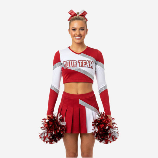 Long Sleeve Cheerleading Uniform Set - Custom Crop Top & Skirt for Youth & All-Star Teams
