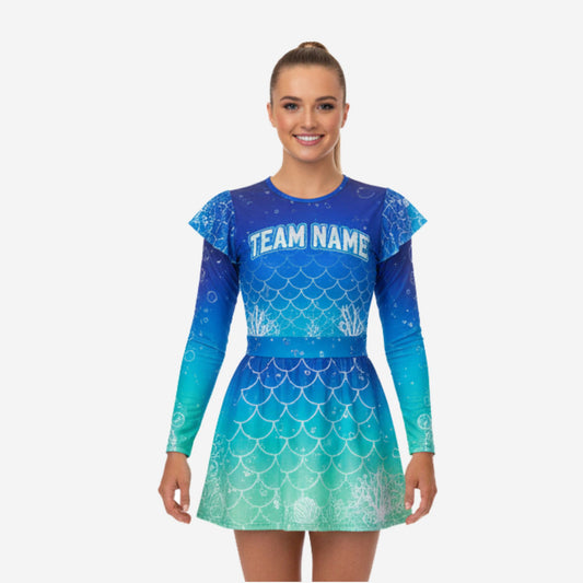 Youth & Adult Cheerleading Dress - Blue Green Gradient Team Uniform Set