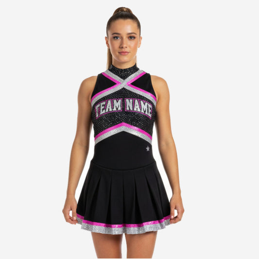 Sleeveless Cheerleading Uniform Dress - Custom Team Name & Number Black