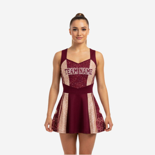 Sleeveless Cheerleading Uniform Dress - Custom Team Name & Number Red Brown