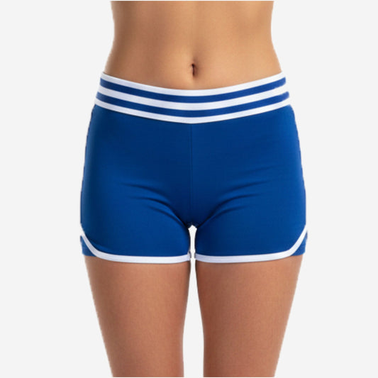 Custom Cheerleading Blue Shorts - Boy Cut Striped Waistband Athletic Shorts