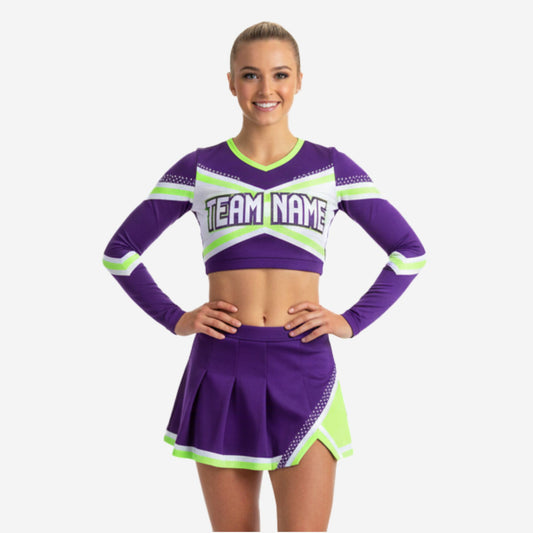 Long Sleeve Custom Cheerleading Uniforms - Crop Top & Skirt Set for Youth & Elite Squads