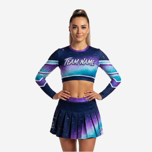 Sublimated Cheerleading Uniform Set - Long Sleeve Top & Skirt for Competition Cheer
