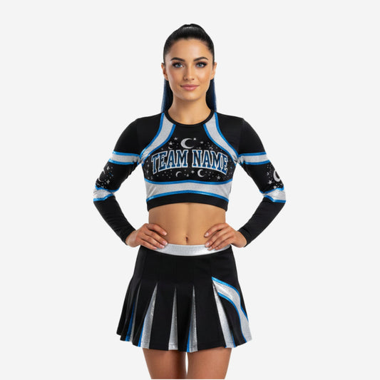 Custom Competition Cheerleading Uniform - Long Sleeve Crop Top & Skirt with Team Customization