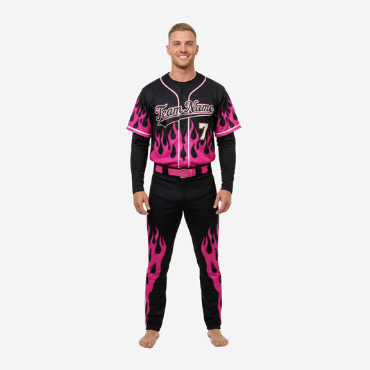 Custom Baseball Team Uniform - Jersey & Pants Custom Name Number Flame Black