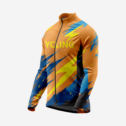Men’s Orange Long Sleeve Cycling Jersey for Road Riders
