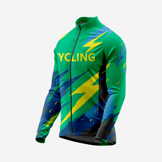 Men’s Blue Green Long Sleeve Bike Jersey for Road Cycling