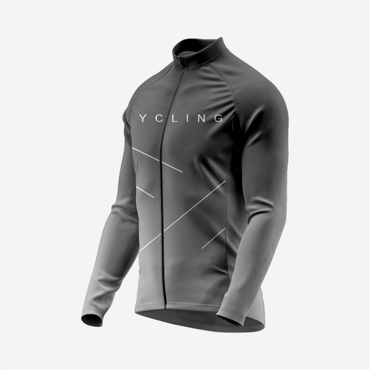 Breathable Men’s Gray Long Sleeve Cycling Jersey with Pockets