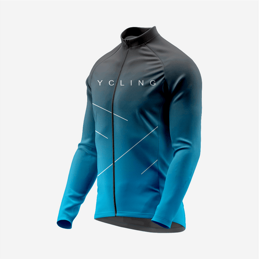 Men’s Sea Blue Long Sleeve Cycling Jersey for Road Riders