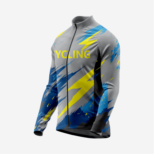 Men's Long Sleeve Cycling Jersey Persian Blue and Grey