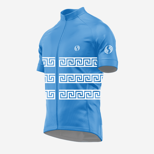 Men's Short Sleeve Steel Blue Greek Style Cycling Jersey