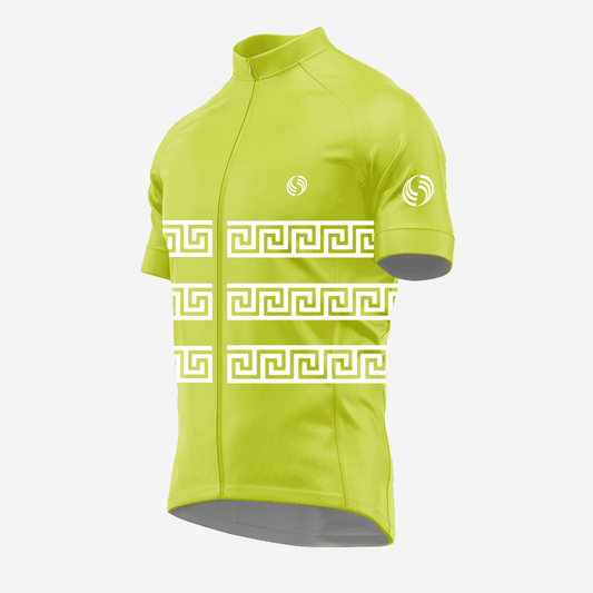 Greek-Inspired Yellow Green Cycling Jersey for Men - Short Sleeve