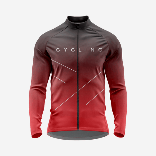 Men’s Long Sleeve Cycling Top and Bib Shorts Set - Red & Gray