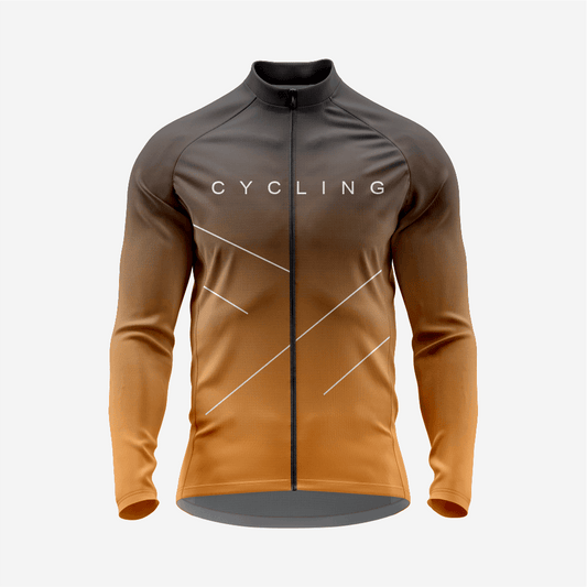 Men's Long Sleeve Cycling Jersey and Bib Shorts Outfit - Brown & Gray