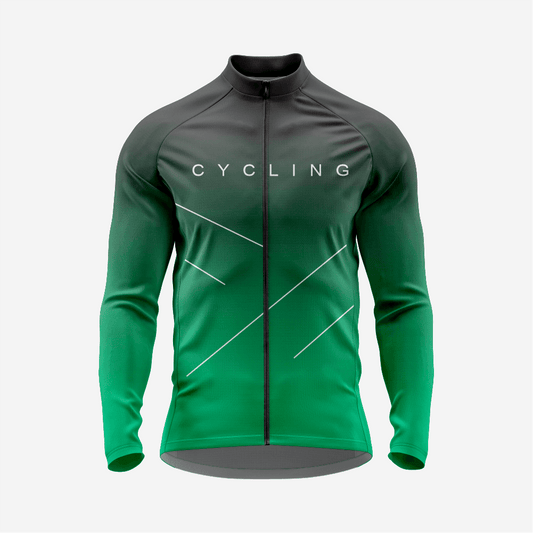 Men's Long Sleeve Cycling Jersey and Bib Shorts Outfit - Green & Gray