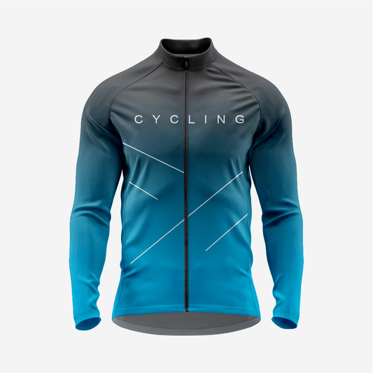 Men’s Long Sleeve Cycling Top and Bib Shorts Set - Blue & Gray