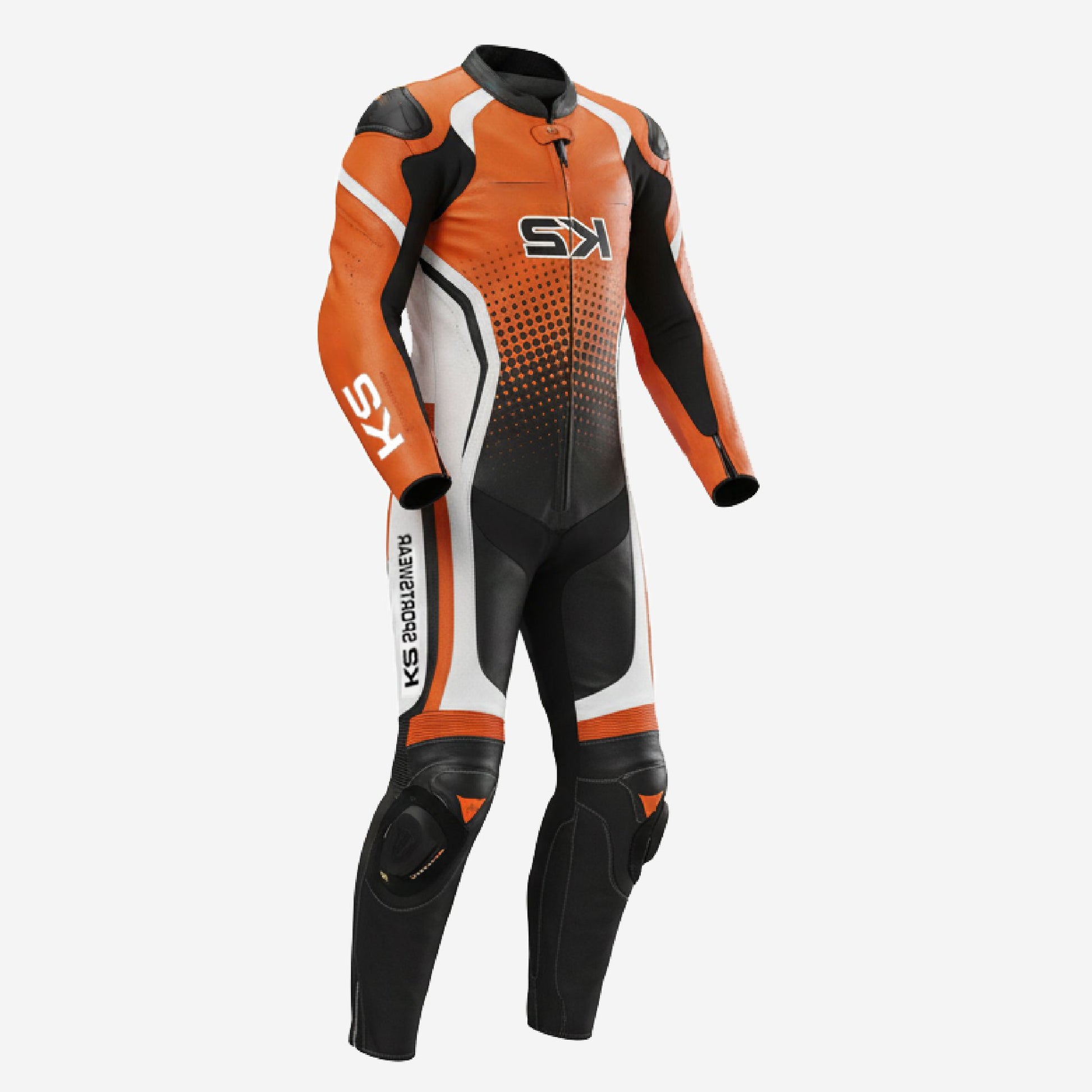 Custom Motorcycle One Piece Suit in Orange & Black - Leather Racing Suit with CE Armor