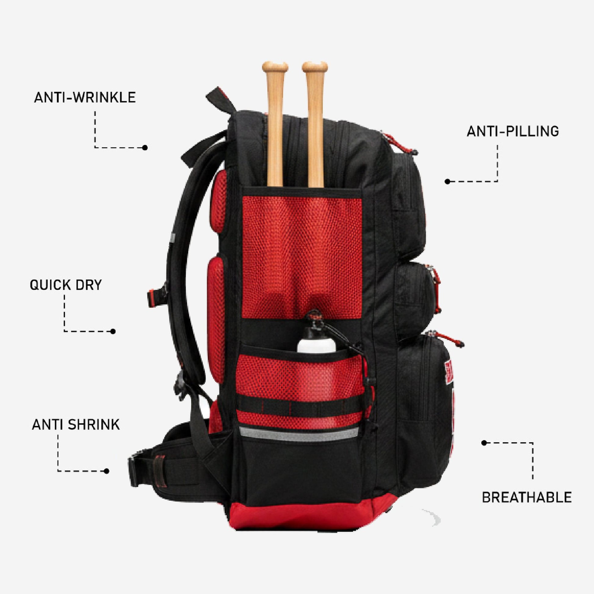 Every compartment serves a specific purpose. The main section holds bulky items like uniforms, sweatshirts, and extra clothing with room to spare. Dedicated bat tubes protect your lumber while keeping it easily accessible. Ventilated cleat pockets isolate dirty shoes from everything else - because nobody wants mud on their clean jersey. Side pockets provide quick-grab access to water bottles, sunscreen, or snacks. Internal zippered pockets secure valuables like phones, wallets, and keys. The organized system means less time searching and more time focusing on baseball. Browse uniforms, jerseys, and pants.
