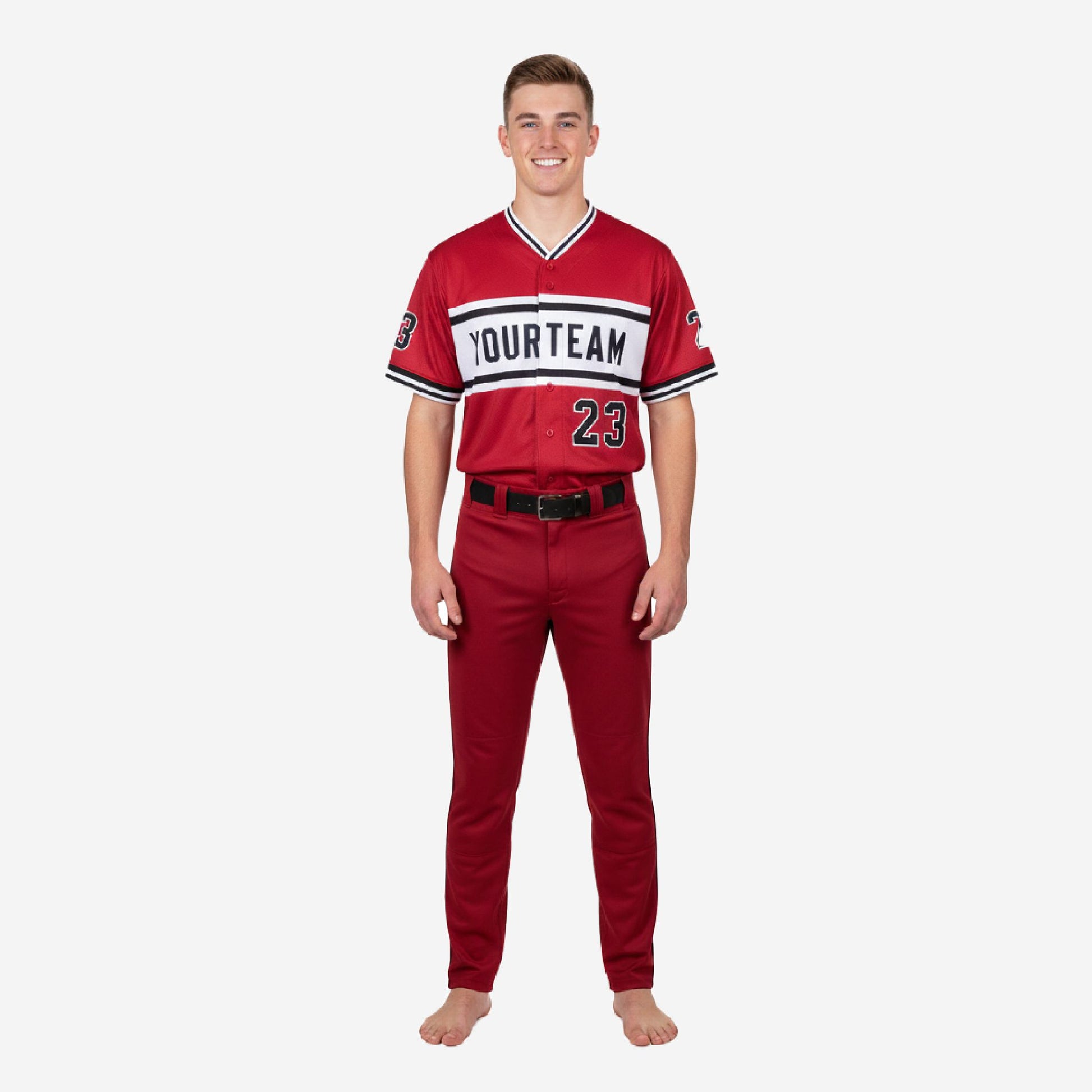 Custom Youth Baseball Uniform Set - V-Neck Jersey & Pants Sublimated in Burgundy