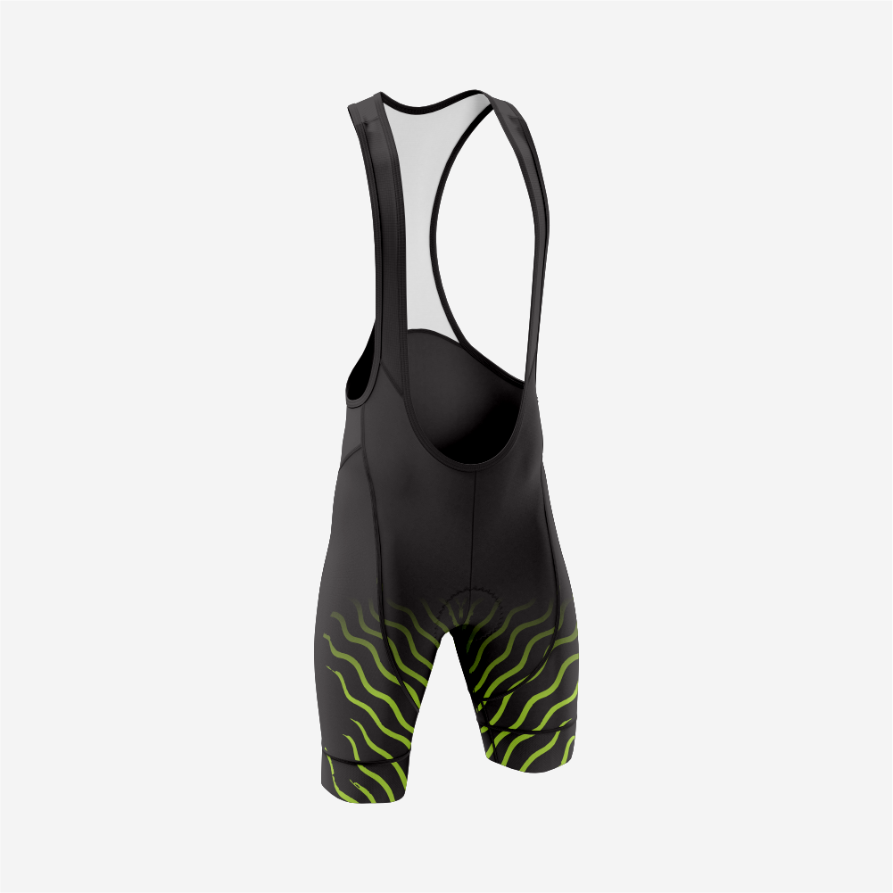 The bib shorts use supportive, elastic straps that distribute pressure across your shoulders for a secure fit. The main body is constructed from a high‑elasticity fabric that provides muscle compression without sacrificing freedom of movement. At the heart of the shorts is a 9D gel‑padded chamois, engineered to relieve pressure on sensitive areas and absorb road vibration. The chamois is perforated for extra breathability and lined with a soft, antibacterial microfiber to reduce irritation. Flatlock seams prevent chafing, and silicone grippers at the leg openings keep the shorts in place. Like the jersey, the shorts feature subtle reflective strips for extra safety when light levels drop.