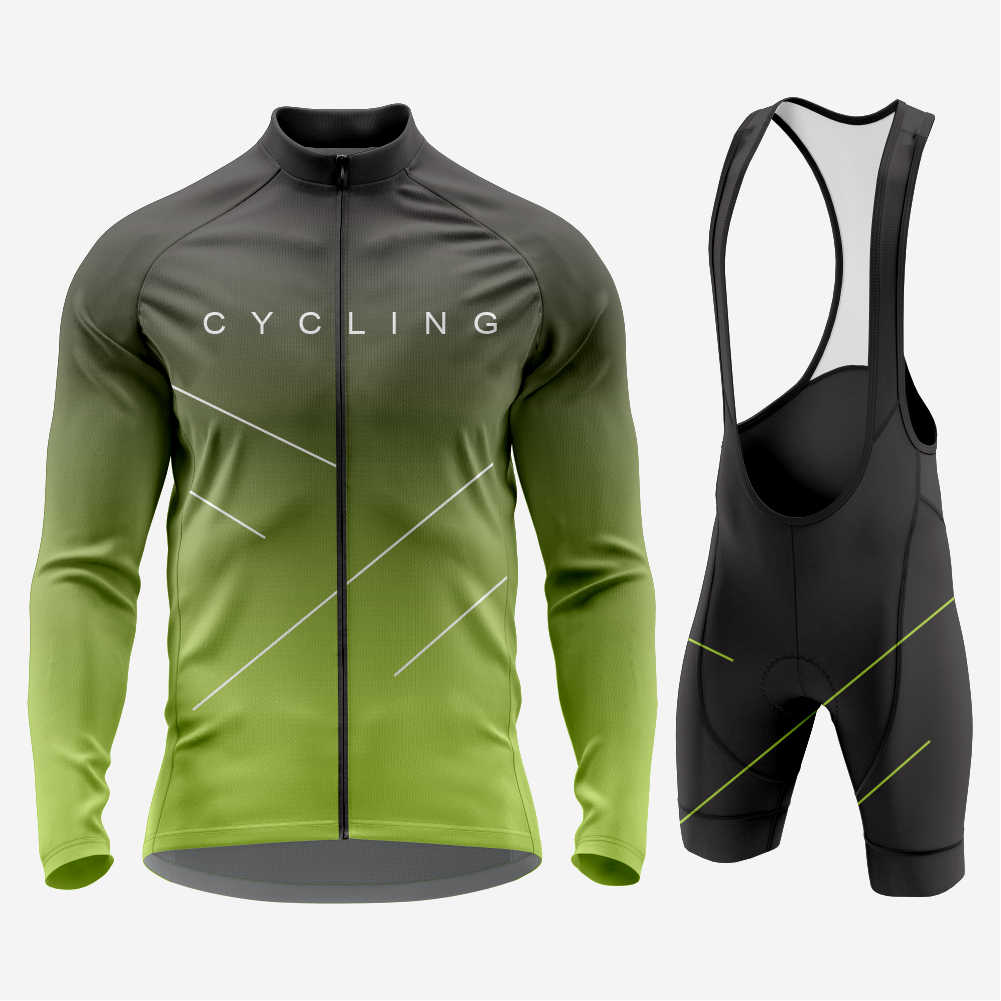 Men’s Long Sleeve Bike Jersey and Bib Shorts Set - Apple Green