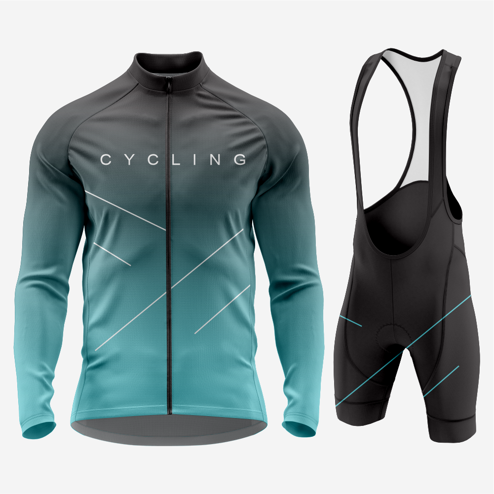 Men’s Long Sleeve Cycling Top and Bib Shorts Set - Teal Blue